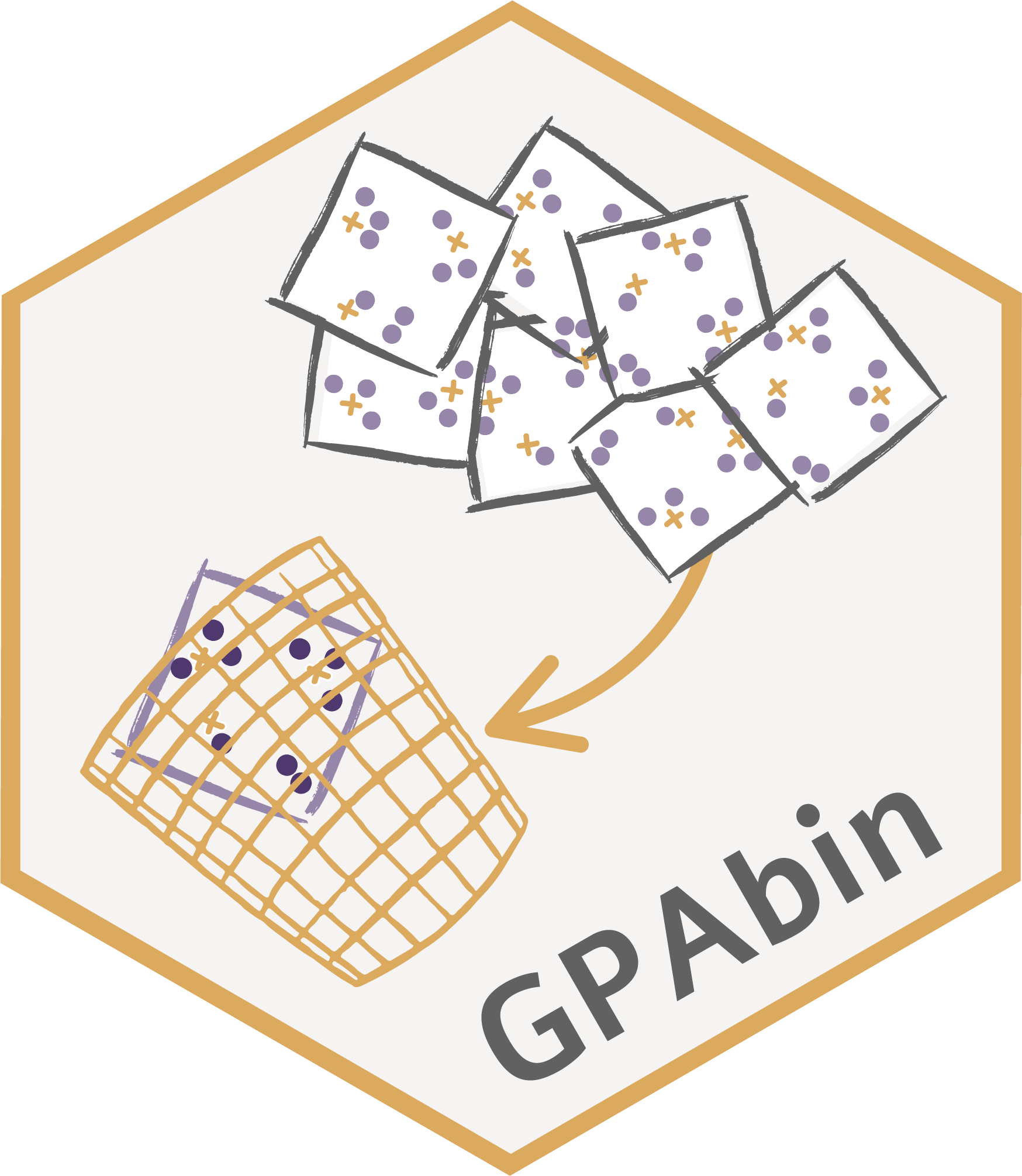 devtools::install_github("jnienk/GPAbin")Generalised orthogonal Procrustes analysis (GPA) is used to align individual biplots before combining their separate coordinate sets into an average coordinate matrix, to mimic Rubin’s rules. Finally, this average coordinate matrix is then utilized to construct a single biplot called a GPAbin biplot.