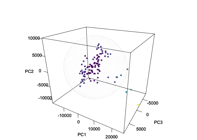 #> $ z: num [1:2500] 7745 7745 7745 7745 7745 ...T2 <- ellipseParam(pca_scores, k = 3)$Tsquare$valuecolor_palette <- viridisLite::viridis(nrow(pca_scores))