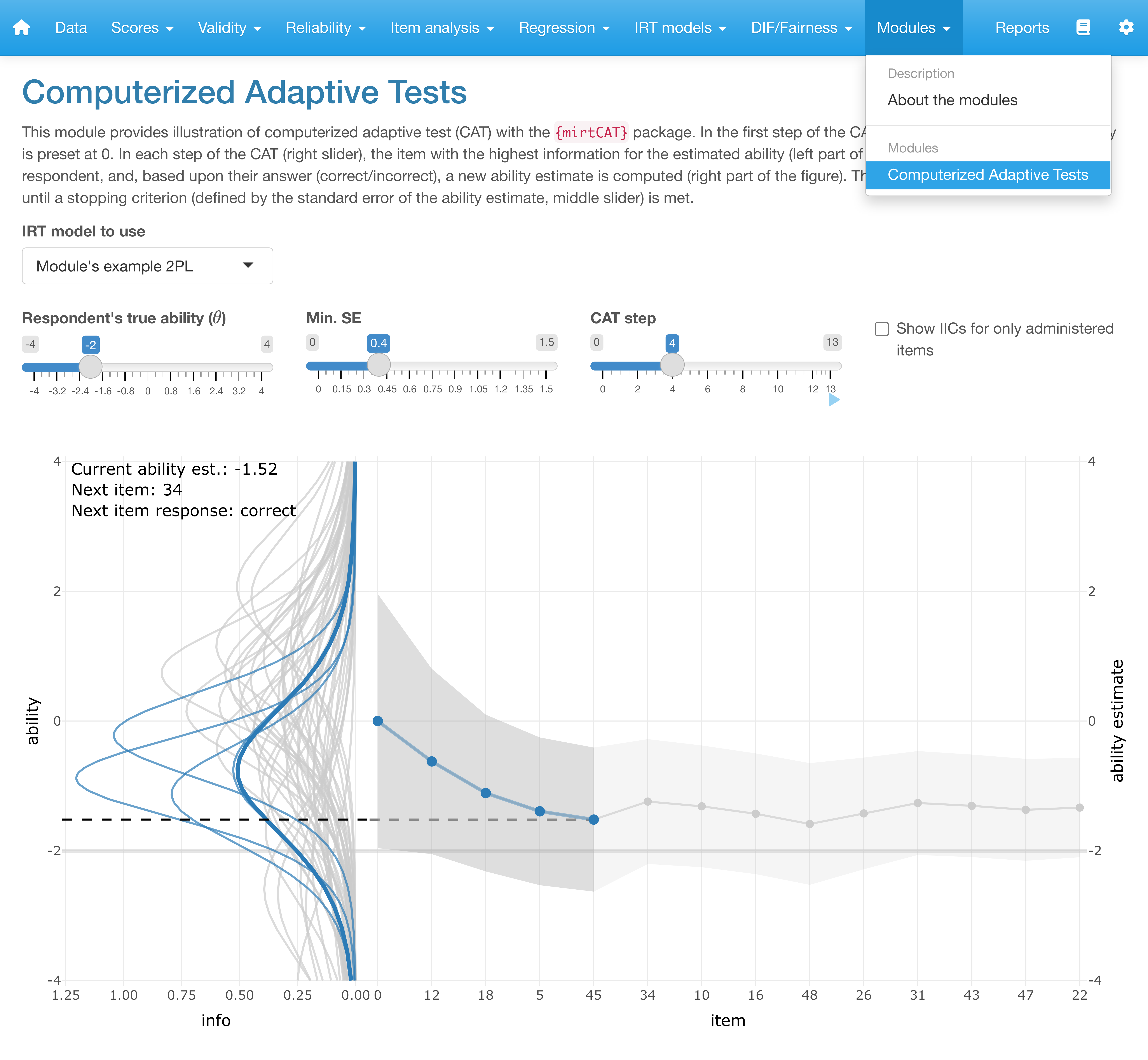 “Computerized Adaptive Tests” module in the ShinyItemAnalysis app