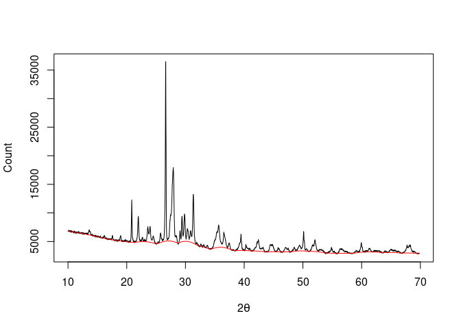 baseline <- baseline_peakfilling(XRD, n = 10, m = 5, by = 10, sparse = TRUE)