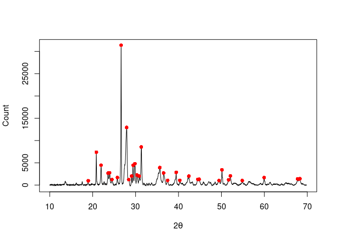 peaks <- peaks_find(XRD, SNR = 3, m = 11)