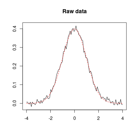 plot(x, z, type = "l", xlab = "", ylab = "", main = "Raw data")