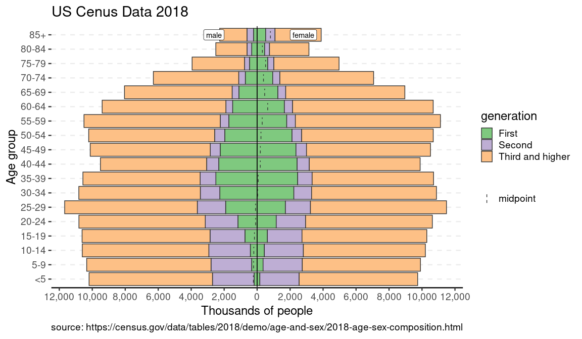 p_gen <- age_pyramid(us_gen_2018, age_group = age, split_by = gender, stack_by = generation, count = count)