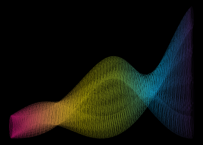 #| The central element is a smooth, undulating ribbon that transitions through a vibrant spectrum