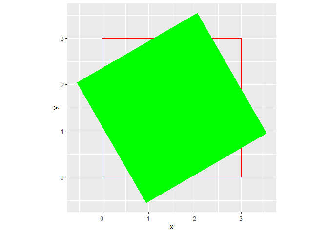 #| ggplot plot showing a bright green square rotated