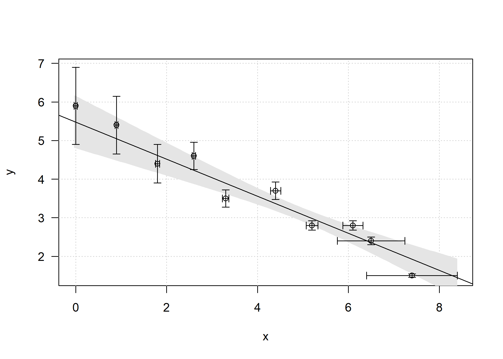 plot(y ~ x, data = df, type = 'n', xlim = c(min(x-sd_x), max(x+sd_x)),