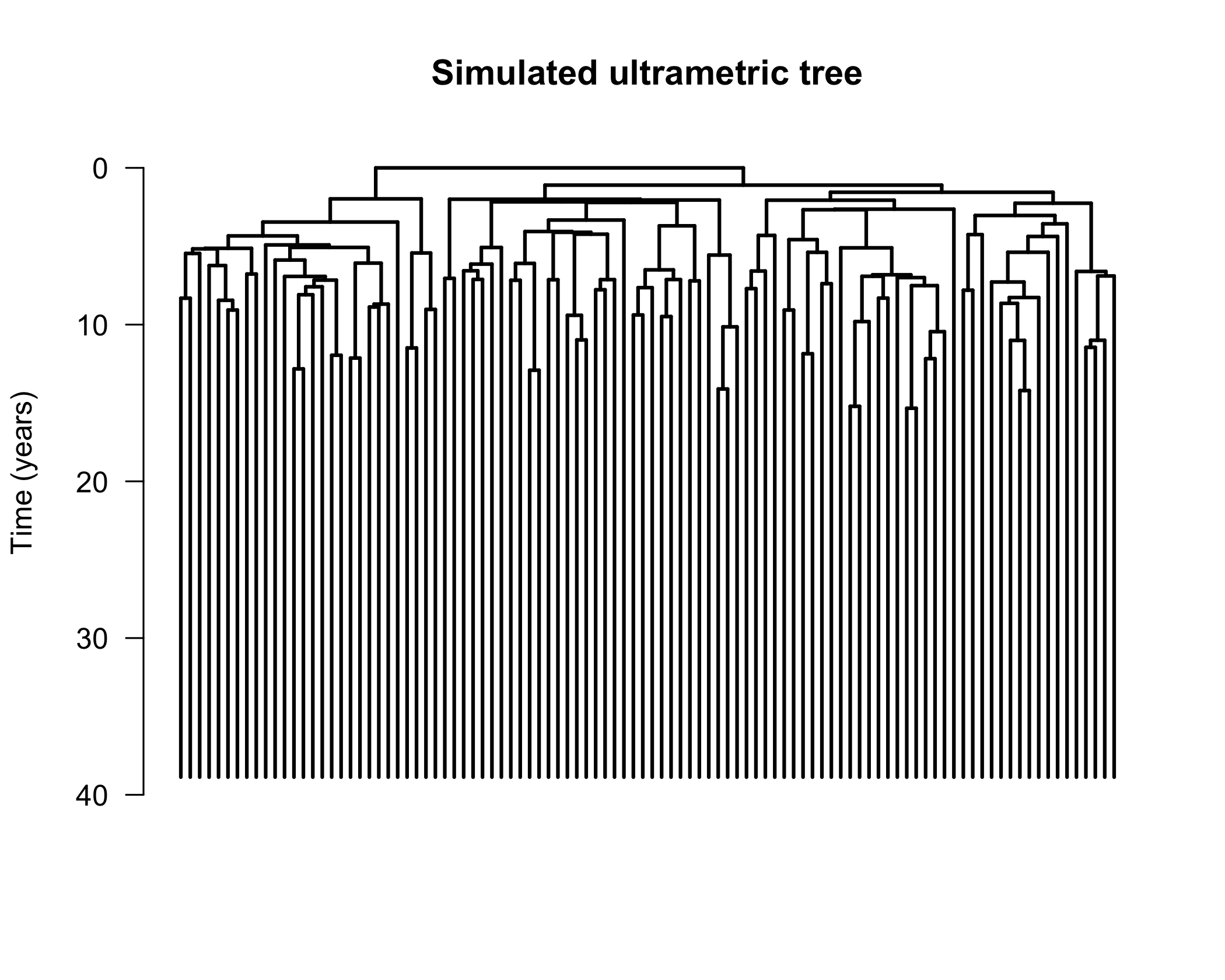 title(main = "Simulated ultrametric tree", ylab = "Time (years)")