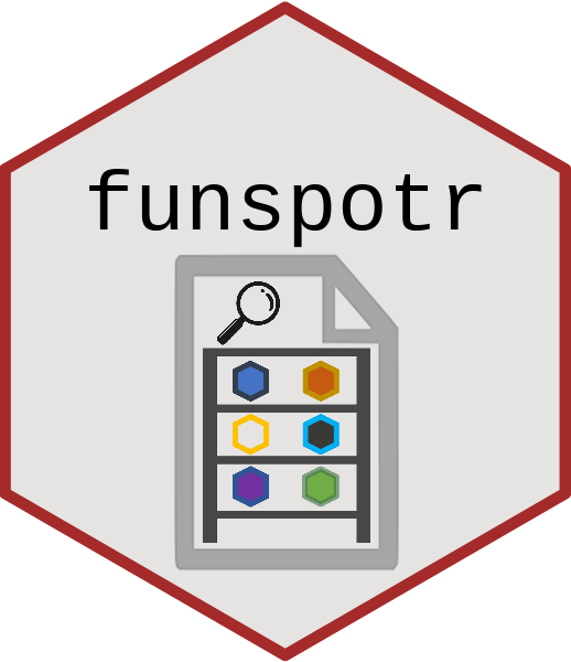 The goal of funspotr (R function spotter) is to make it easy to identify which R functions and packages are used in files and projects. It was initially written to create reference tables of the functions and packages used in a few popular github repositories1.