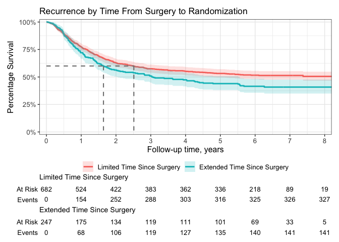 title = "Recurrence by Time From Surgery to Randomization",