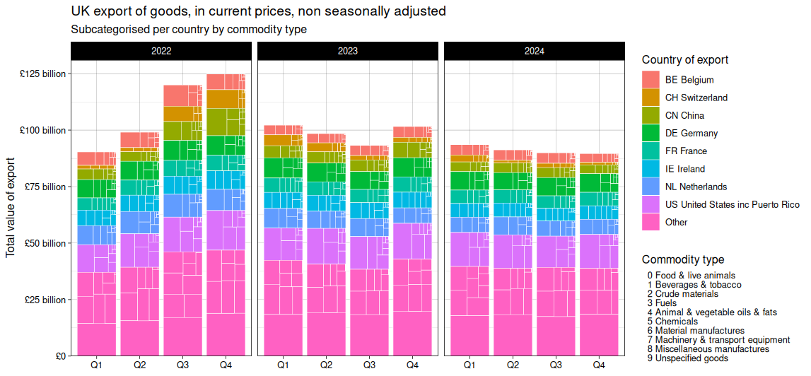The goal of ggtreebar is to provide ggplot2 geoms analogous to geom_col() and geom_bar() that allow for treemaps using treemapify nested within each bar segment.