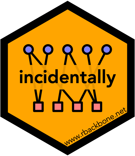 install_github("zpneal/incidentally", ref = "devel", build_vignettes = TRUE)The incidentally package adopts the tinyverse philosophy, and