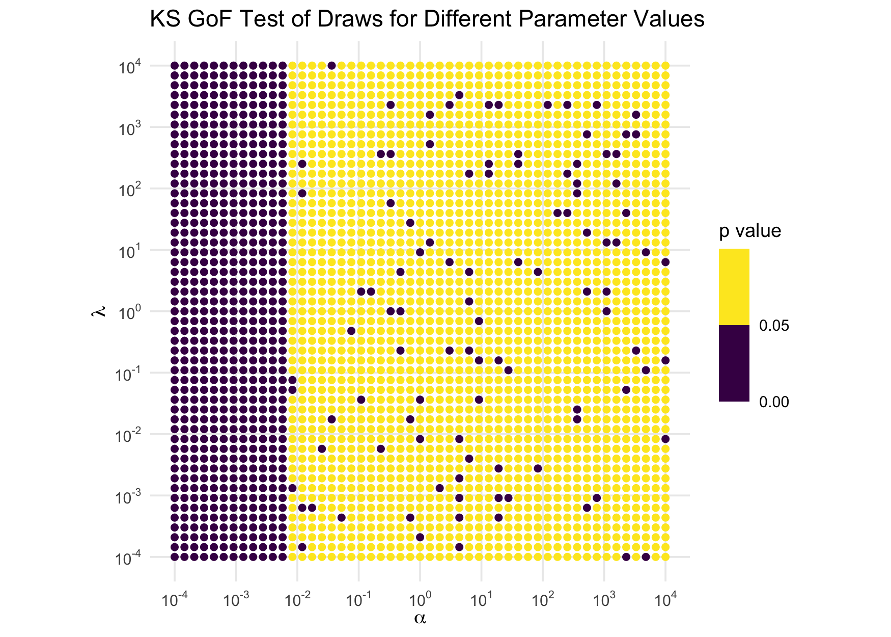 labs("title" = "KS GoF Test of Draws for Different Parameter Values") +