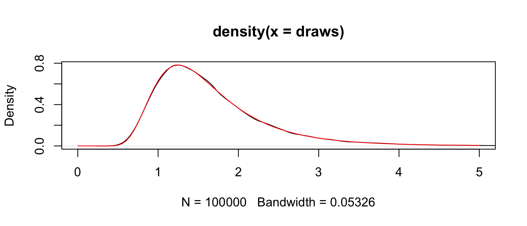 plot(density(draws), xlim = c(0,5))