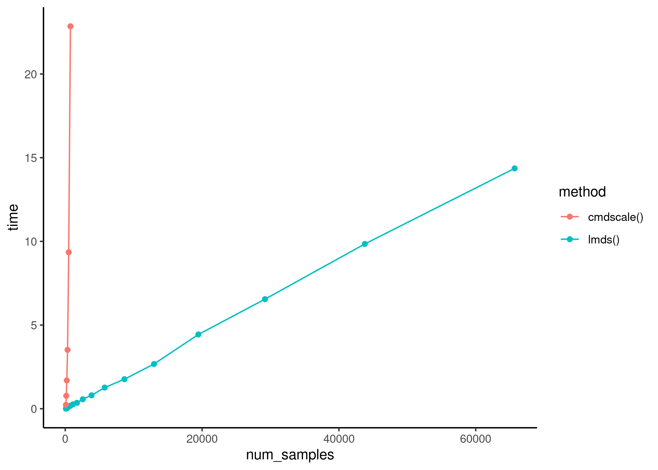 The execution time of lmds() scales linearly with