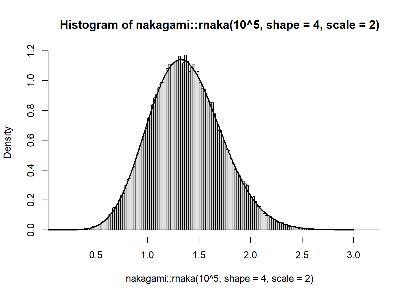 lines(x, nakagami::dnaka(x, shape = 4, scale = 2), type = "l", lwd = 2)