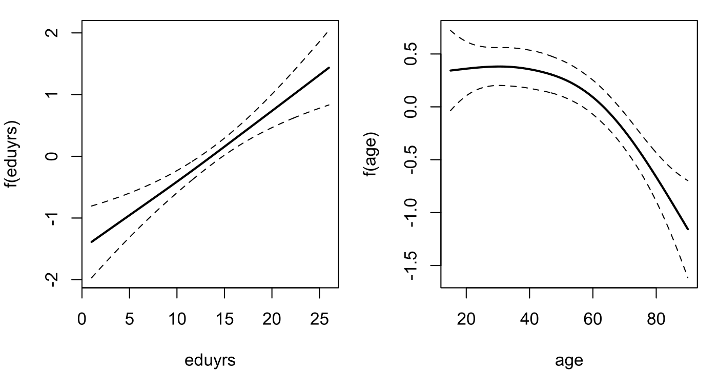 ## ordgam(formula = freehms ~ s(eduyrs) + s(age), descending = FALSE,