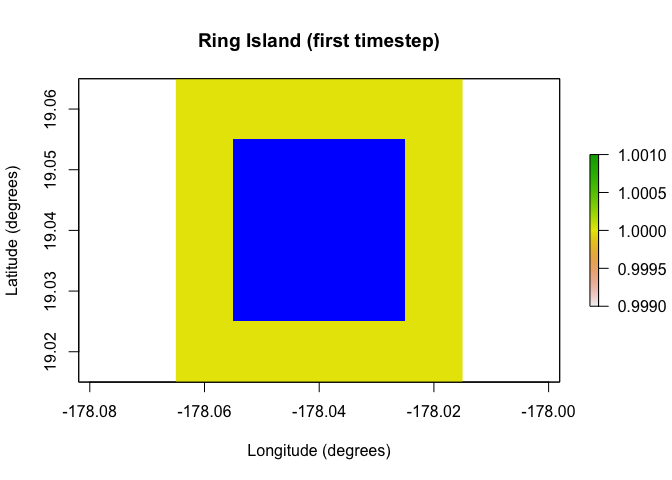 raster::plot(region$temporal_mask_raster()[[1]], main = "Ring Island (first timestep)",
