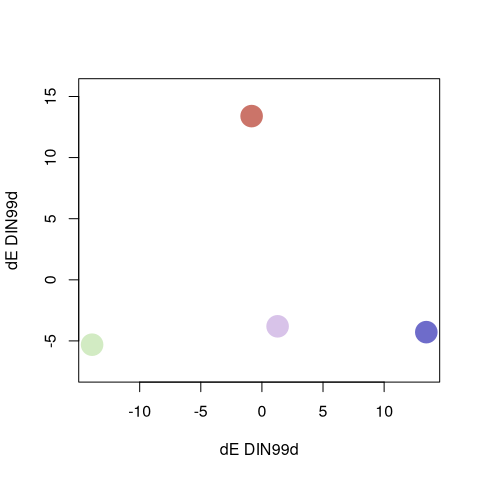 )We can look at a distance matrix of the pairwise color differences from the palette we have generated.