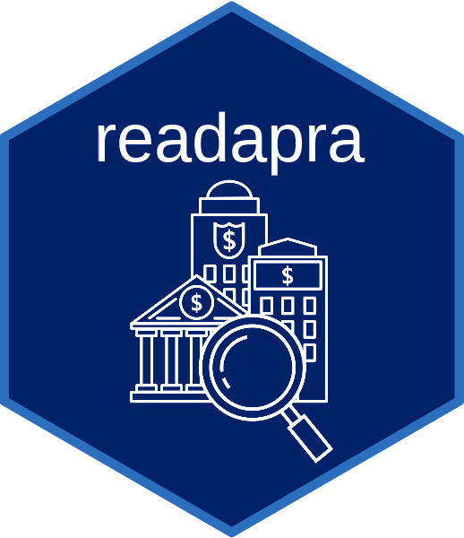 The readapra package facilitates the downloading and importing of statistical publications published by APRA. The package also allows for the importing of data from locally saved statistical publication files.