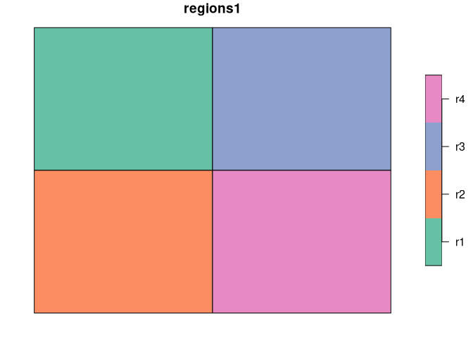 devtools::install_github("Nowosad/sabre")We use two simple regionalization, regions1 and