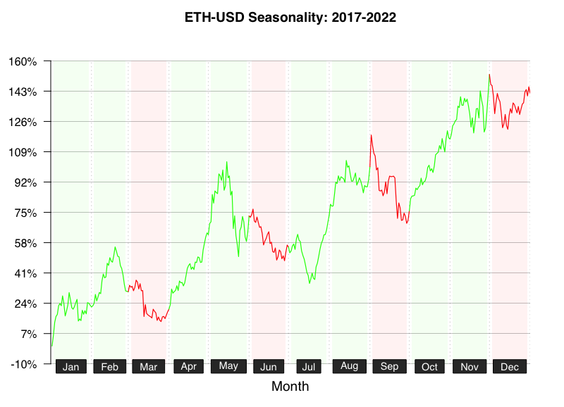 #Plot an averaging seasonality of Ethereum (ETH-USD) between 2017 and 2022.