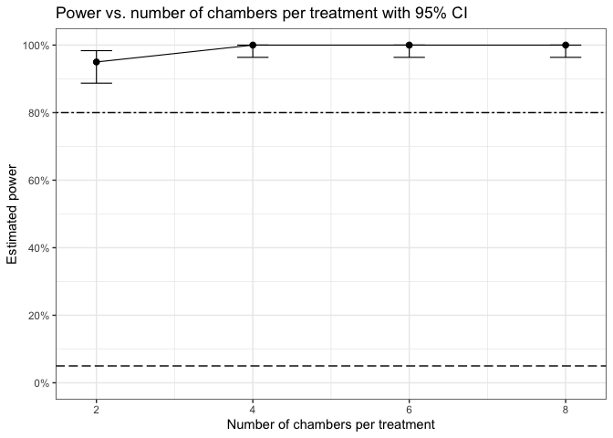 title = "Power vs. number of chamber per treatment by intervention effect Size"