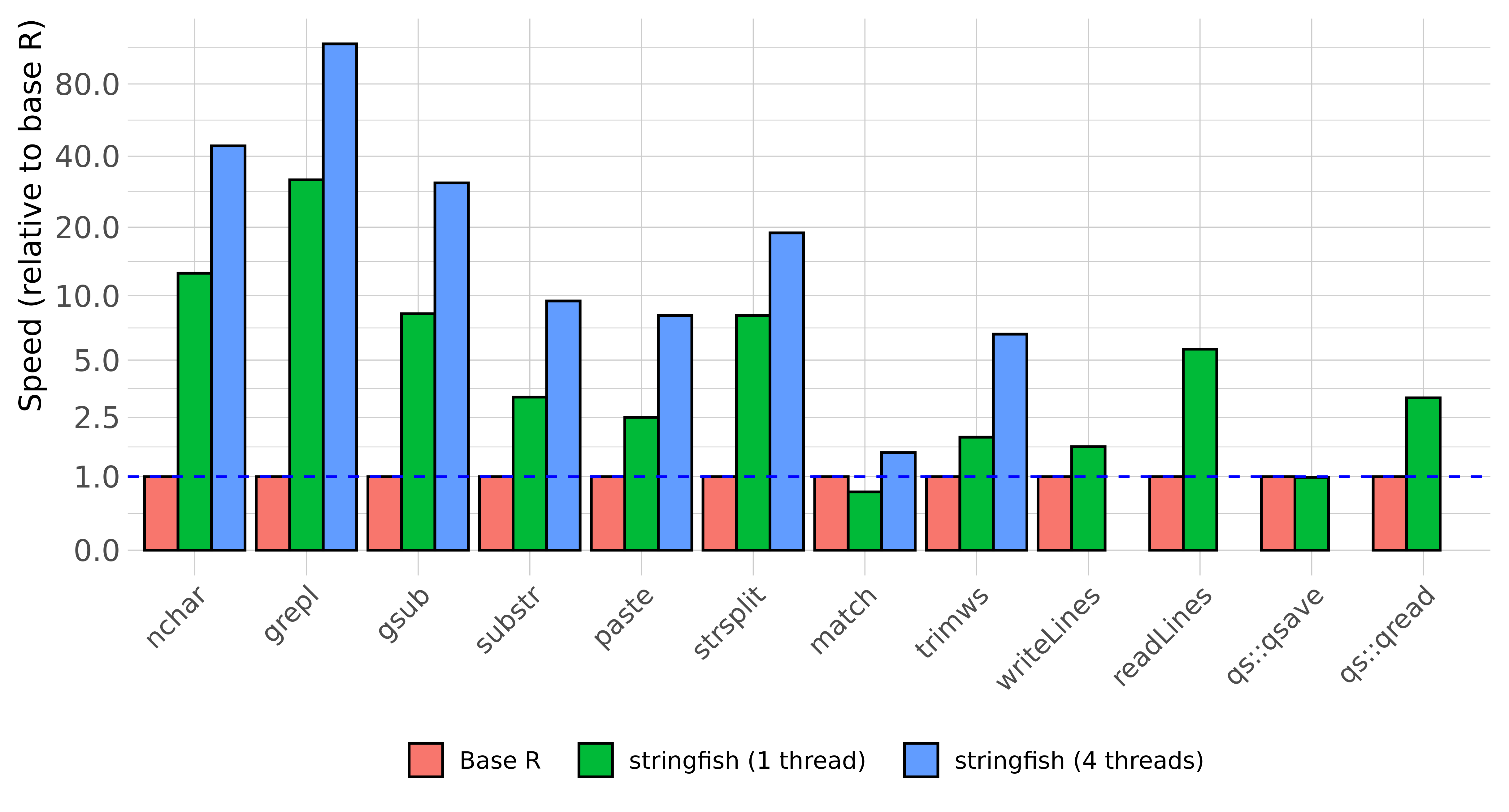 through a quick benchmark comparing stringfish and base