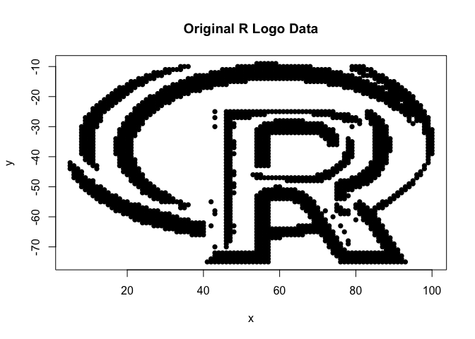 plot(r_logo_image_data, pch = 16, main = "Original R Logo Data")