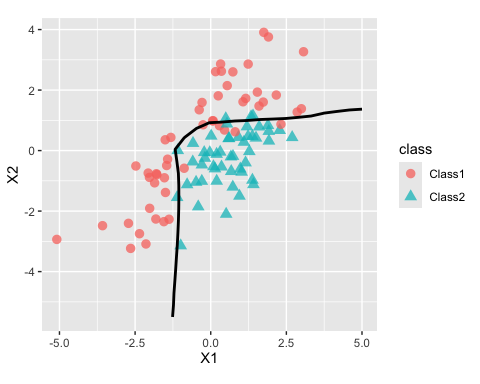 geom_contour(aes(z = .pred_Class1), breaks = 1/ 2, col = "black", linewidth = 1) +