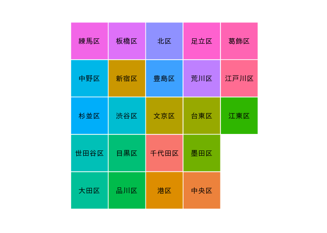 tabularmapsは、CC0で公開されているカラム地図プロジェクトが進める行政区分等のグリッドレイアウトによる可視化をRパッケージとして提供するものです。