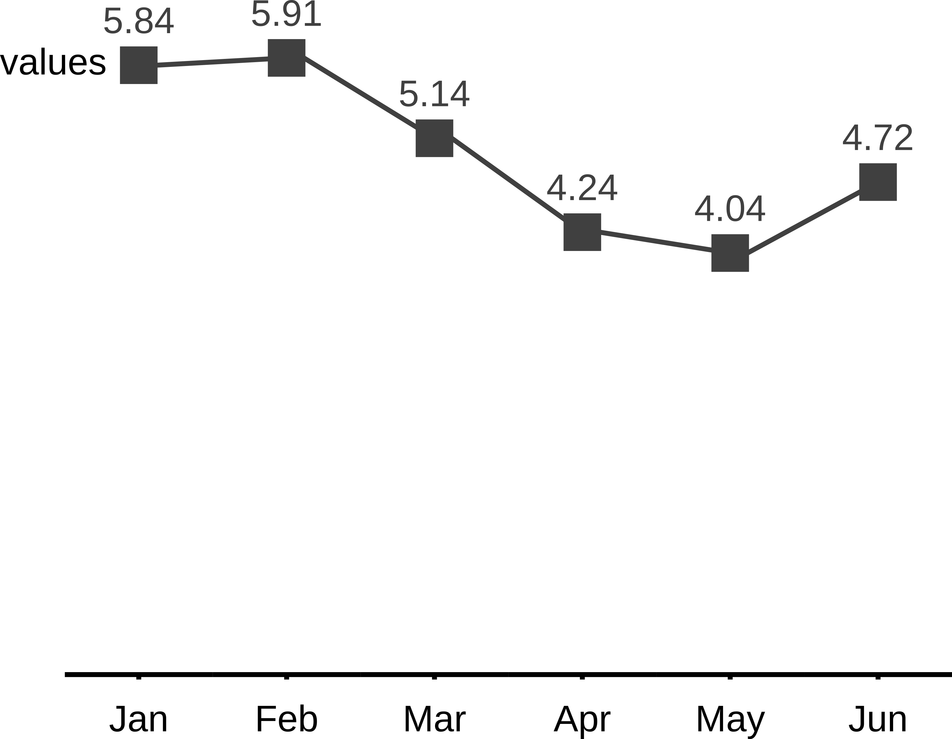 line_chart_markers(df, x = df$months, series = 'values', series_labels = 'values')