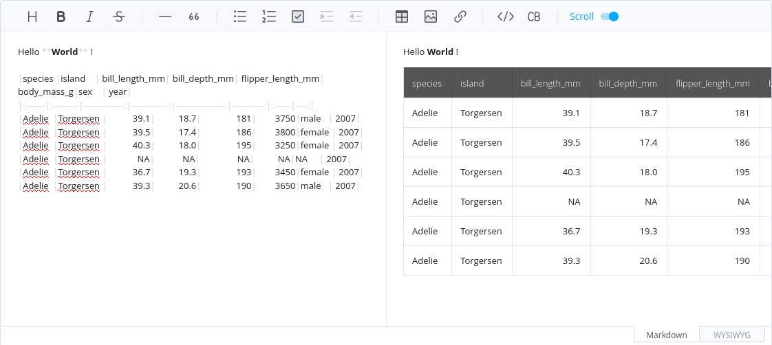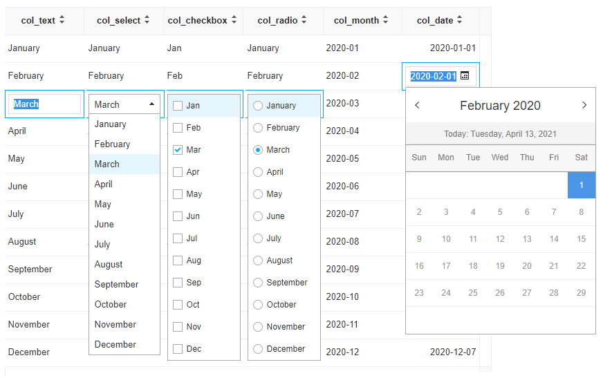 remotes::install_github("dreamRs/toastui")Interactive tables with data editing, filtering, sorting, and more. See documentation and examples: